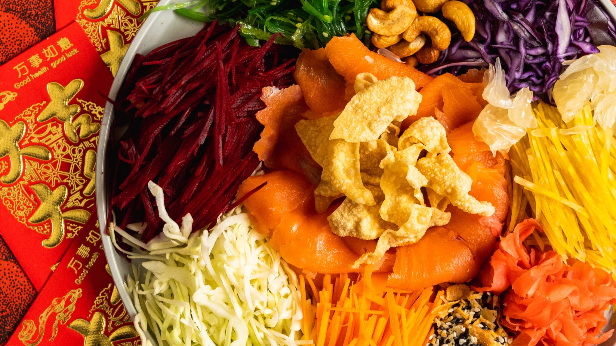 The Prosperity Toss is returning to Potluck Hawkery Eatery February 9-11, 2024 (dine-in). Yu Sheng (aka the Prosperity Toss) is a combo of smoked salmon, tuna tataki, julienned vegetables, cashew, and sesame dressing. Symbolically, you toss the ingredients up high with chopsticks to introduce the New Year.